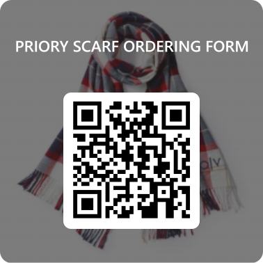 The scarf features an embroidered 30th anniversary logo created by the Priory Media Club. Personalization is included in the $38.00 price.